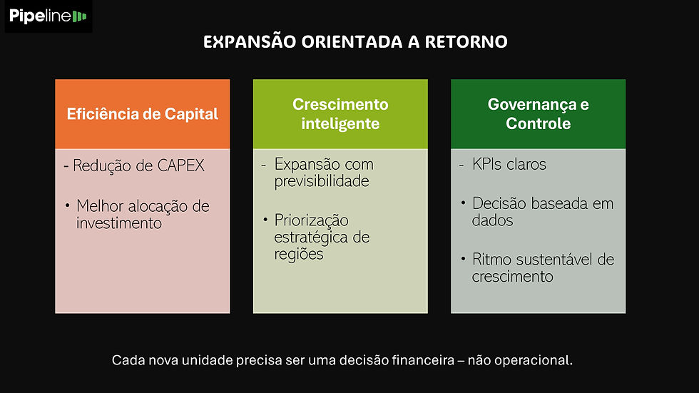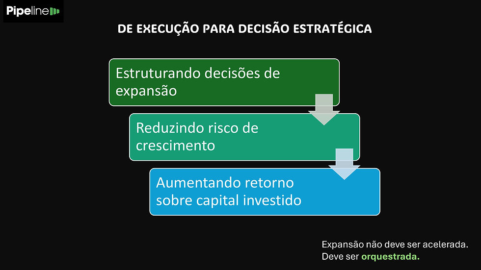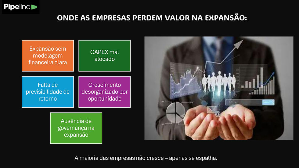 Segundo a metodologia apresentada no material da Pipeline Projetos, muitas empresas crescem de forma desorganizada por falta de estratégia e alinhamento entre operação e investimento .